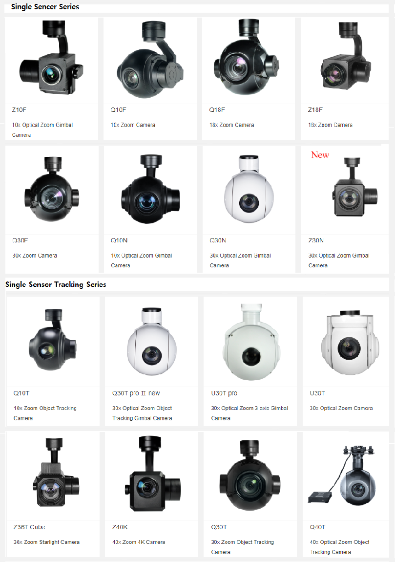 .Q10F 짐벌과 카메라에는 10배 광학 줌 렌즈가 있습니다. 유형 1/3인치 CMOS 센서는 UAV 항공 사진용으로 설계된 약 400만 유효 픽셀, HD 1080p 비디오, 빠른 자동 초점 속도, 작은 크기를 지원합니다. 우리는 FOC 솔루션을 사용하여 UAV의 진동을 크게 보상할 수 있습니다. 광학 줌 배율 10배에서도 이미지가 매우 안정적입니다.